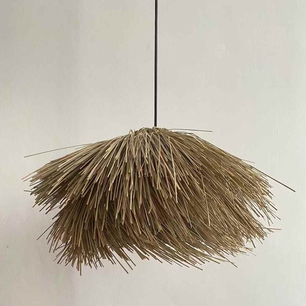 Lámpara Colgante Estilo Japonés fabricada en fibra natural, con un diseño vintage, crea un ambiente acogedor y sereno, perfecto para espacios como comedores, salones o entradas.